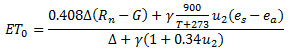 u2 – wind speed at 2 m above ground surface [m s-1]