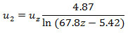 - Mean wind speed (u2) at 2 m above ground surface will be calculated as: