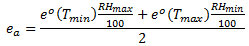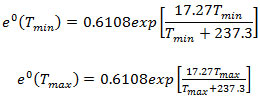- e°(Tmin) and e°(Tmax) are calculated as follows: